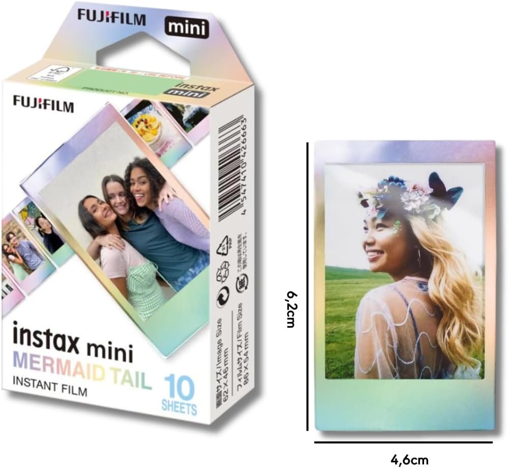 kit câmera instax mini 12 com pack 10 fotos mermaid tail e bolsa verdeKit Câmera Instax Mini 12 com pack 10 fotos Mermaid Tail e Bolsa Verde