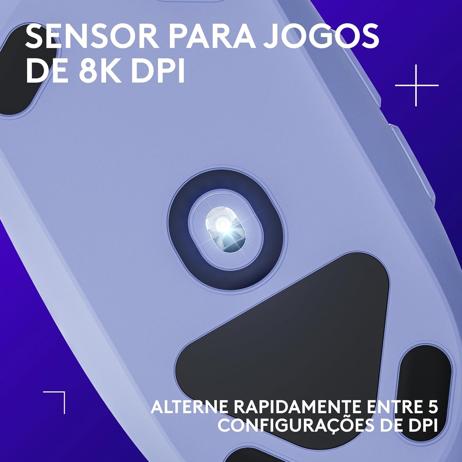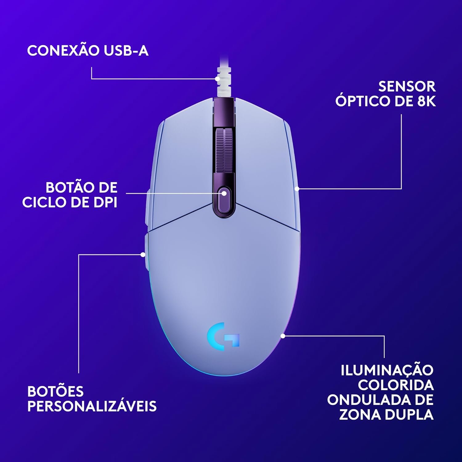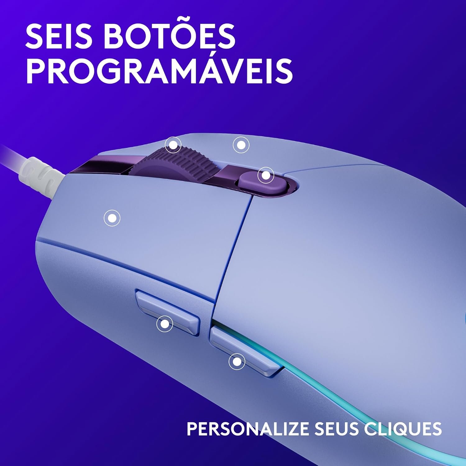 Mouse Gamer Logitech G203 LIGHTSYNC RGB, Efeito de Ondas de Cores, 6 Botões Programáveis e Até 8.000 DPI – Lilás