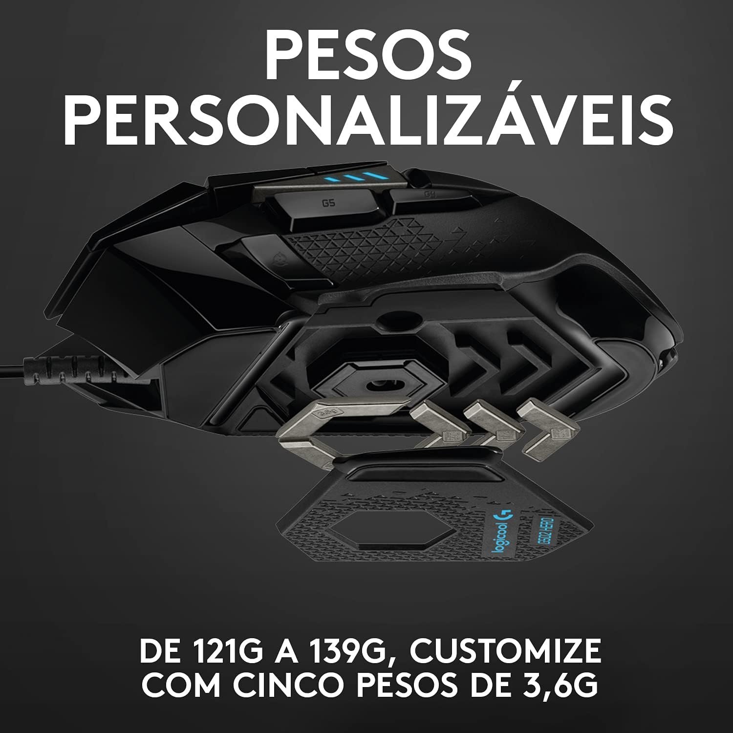 Mouse Gamer Logitech G502 HERO com RGB LIGHTSYNC, Ajustes de Peso, 11 Botões Programáveis e Sensor HERO 25K