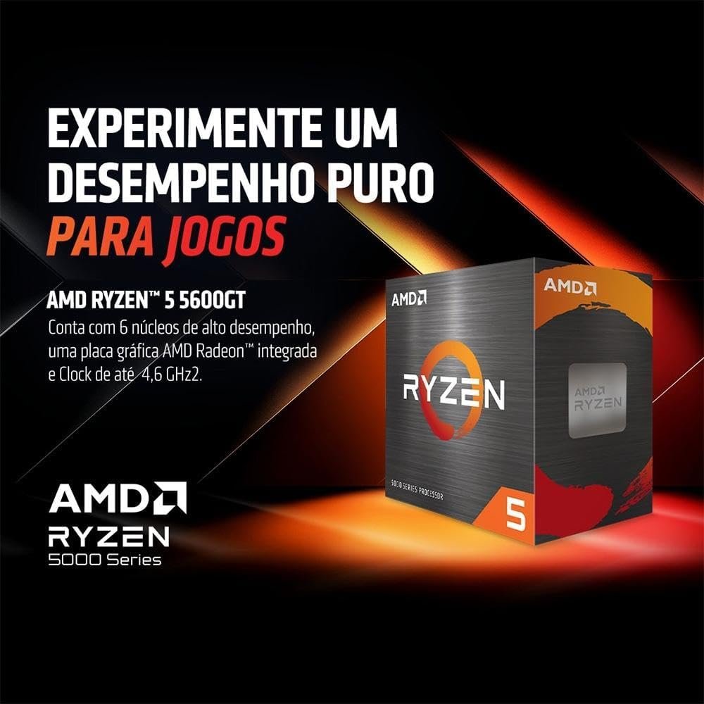 - Processador Ryzen 5 56GT com 6 núcleos, frequência base de 3,6 GHz e turbo máx. de 4,6 GHz, oferecendo alto desempenho para jogos