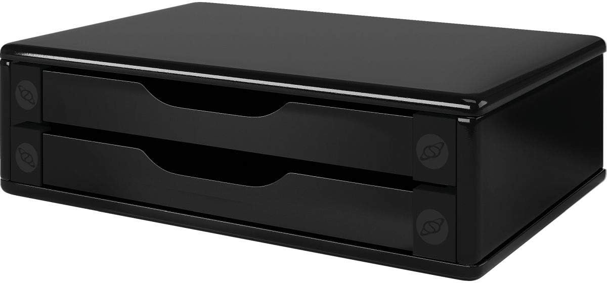 Suporte de Monitor 2 Gavetas, Mdf Preto (Black Piano) – Souza & Cia