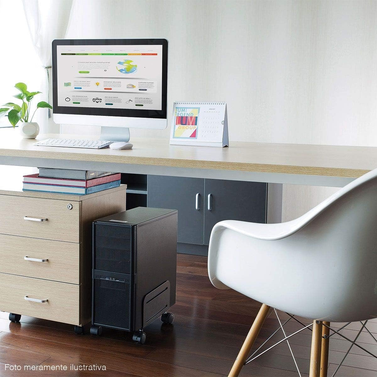 - Com 4 rodízios, sendo dois traváveis que impedem que o suporte deslize, o gabinete pode ser facilmente transportado