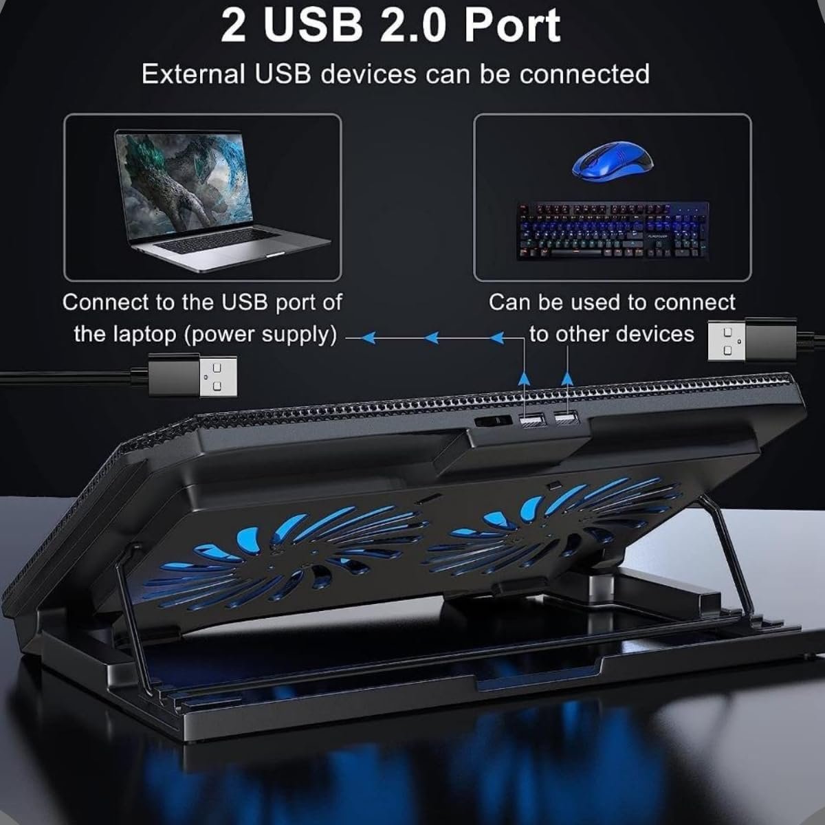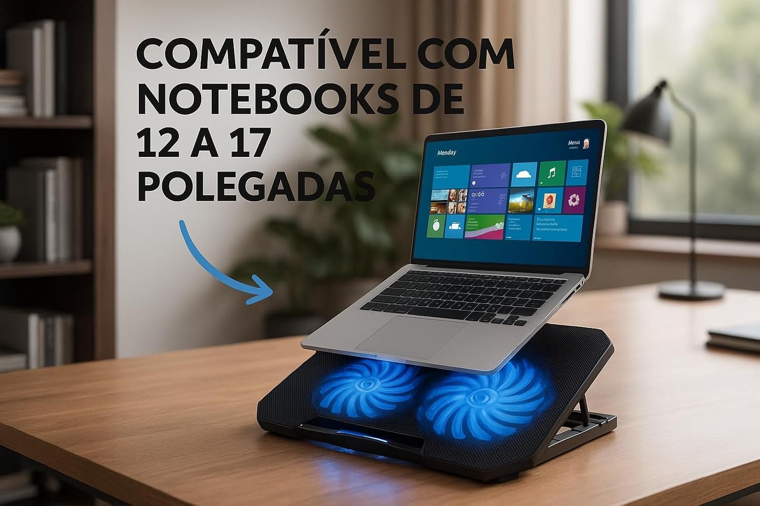 Suporte Para Notebook Com Cooler Duplo Silencioso Com 8 Níveis de Ajuste Ergonômico, Saída USB Adicional e Iluminação Interna Base Para Notebook de Até 17 Polegadas